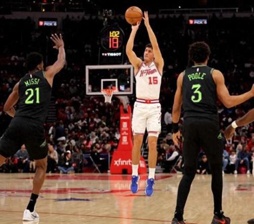 小贾交出了一份足够亮眼的成绩单,但对熟悉火箭这段时间表现的人来说,这太不容易了。进入12月下旬以来,小贾的状态可以用“断崖式下滑”来形容。三分线外被放空是常态,而他却频频三不沾,甚至出现空位出手直接砸框的尴尬画面。作为火箭阵中除杜兰特外最有外线威胁的球员,小贾一旦哑火,整个进攻体系几乎瞬间瘫痪。试想一下火箭目前的首发配置:申京在内线持球策应,阿门冲击篮筐,杜兰特负责中远距离攻坚,奥科吉提供防守协防功能,而真正能稳定拉开空间、给杜兰特创造单打机会的,几乎只剩下小贾一人。