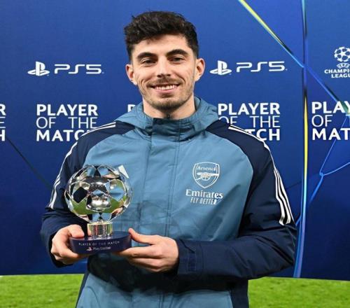 欧冠联赛阶段第8轮,阿森纳主场3-2击败阿拉木图凯拉特,此役传射建功的哈弗茨当选欧冠官方全场最佳球员。