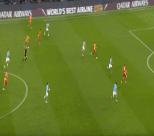 第45分钟,艾特-努里左路强行突破,随后倒三角送到门前,福登迎球抽射打飞。
